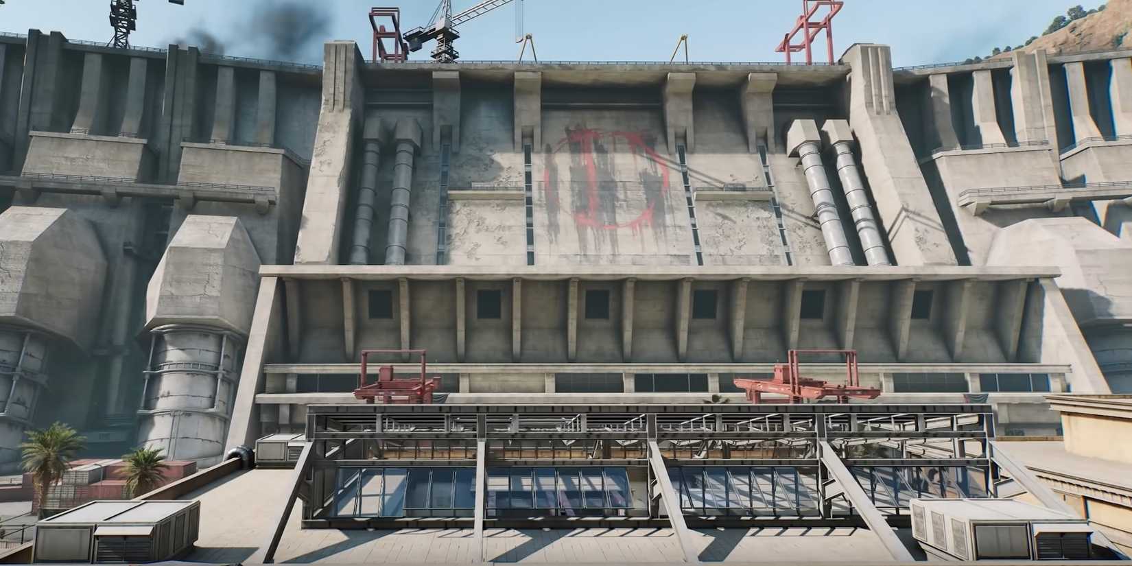 Zero Dam is an intermediary map, with the dam overlooking the area. The map is divided into clusters of buildings separated by hills and a river. There is plenty of room for most gameplay styles here.